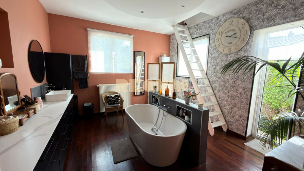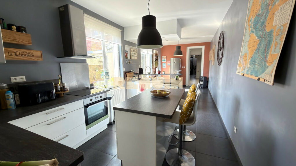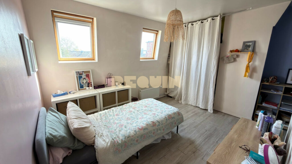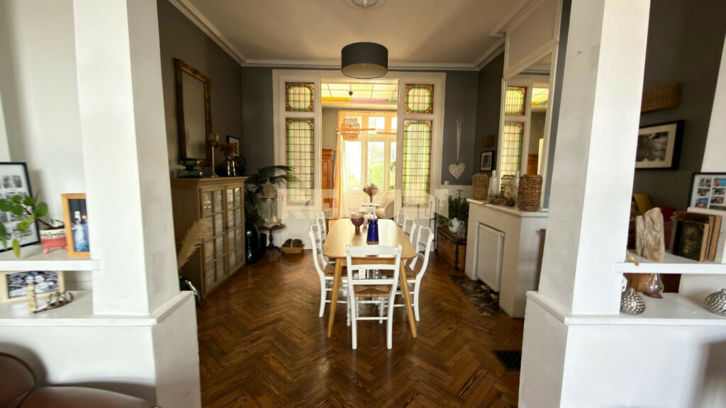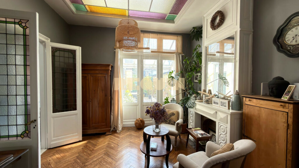 Tourcoing centre – Magnifique demeure bourgeoise développant 210 m² au sol. La maison dispose d’une grande pièce de vie avec cheminée feu de bois et d’une très grande hauteur sous plafond. La cuisine est contemporaine et dispose d’un espace salle à manger attenant. Aux étages, on retrouve 6 belles chambres. Un jardin exposé EST de 150 m² très bucolique et une grande cave complète ce bien.