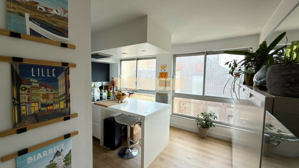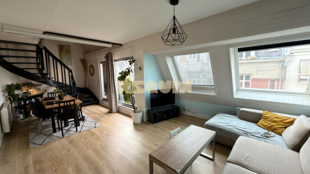 Lille Hyper Centre – Magnifique appartement T3 de 98 m² au sol dans un état impeccable, situé en plein cœur de Lille. L’appartement, agencé en duplex est au dernier étage d’une résidence parfaitement tenue et avec ascenseur. Il dispose d’un grand séjour exposé sud-est avec accès direct à une petite terrasse avec vues sur les rues piétonnes du centre. La cuisine est hyper moderne avec un espace repas chaleureux. A l’étage, vous retrouverez deux grandes chambres avec rangements, dressing, espace bureau et grande SDB. Une cave individuelle privative et une possibilité de location de parking à deux pas.